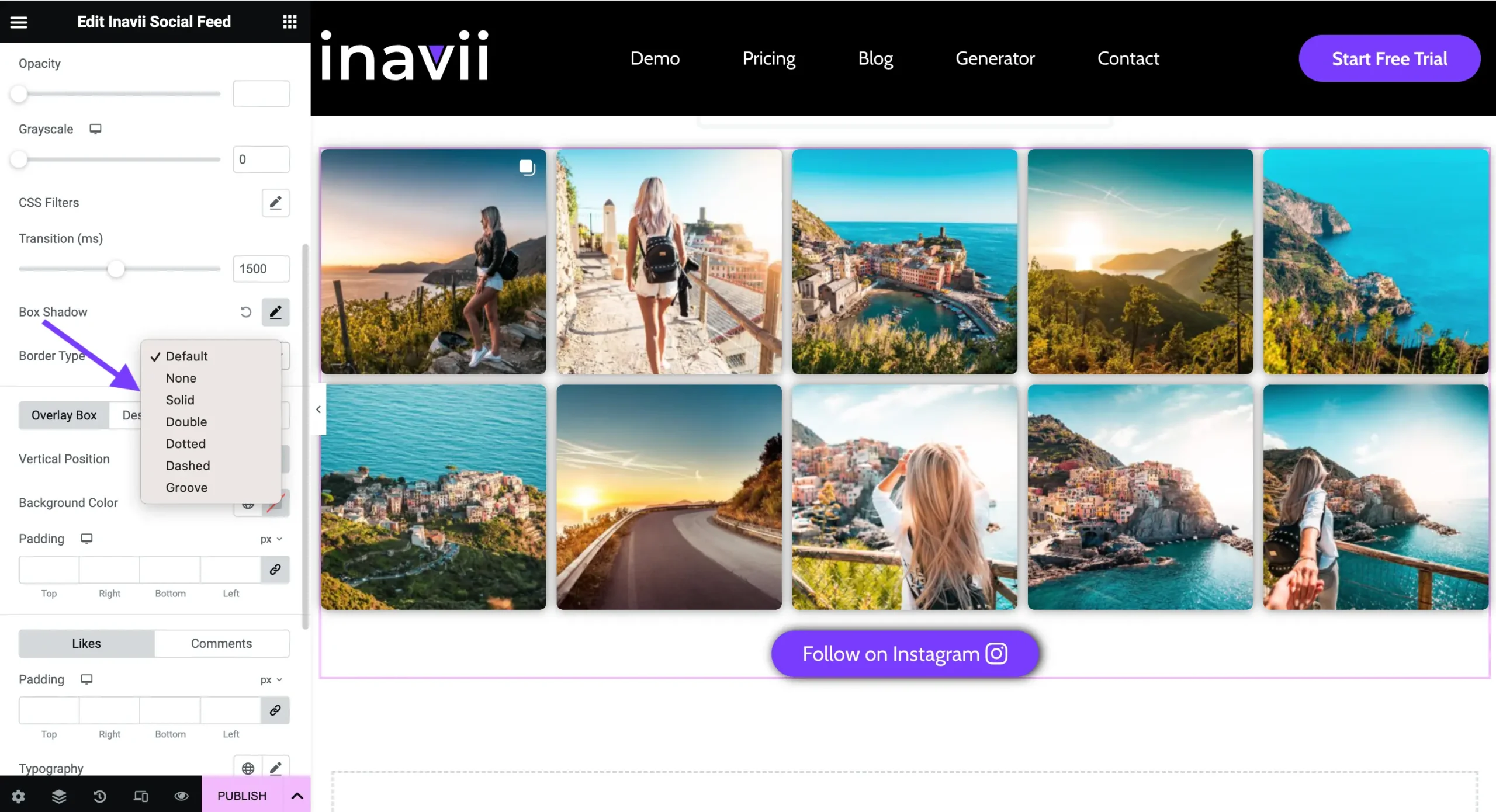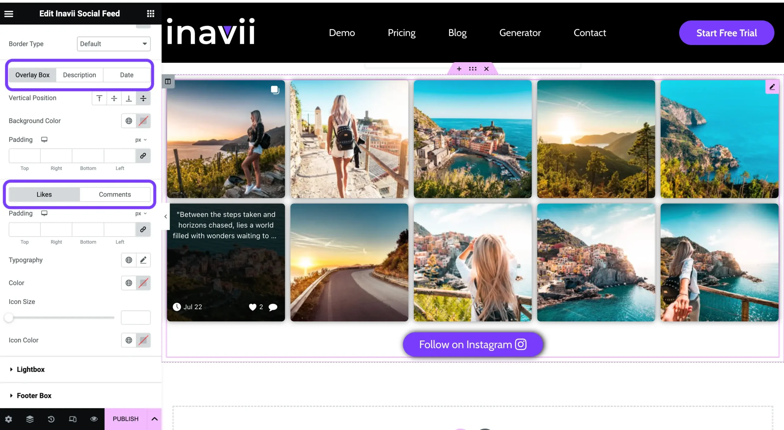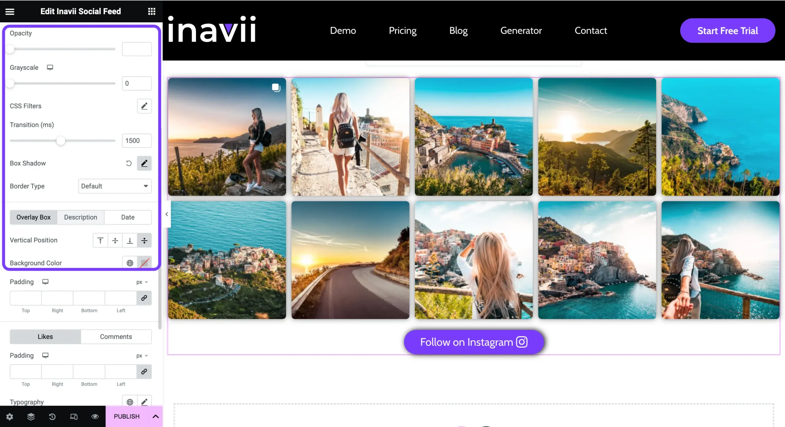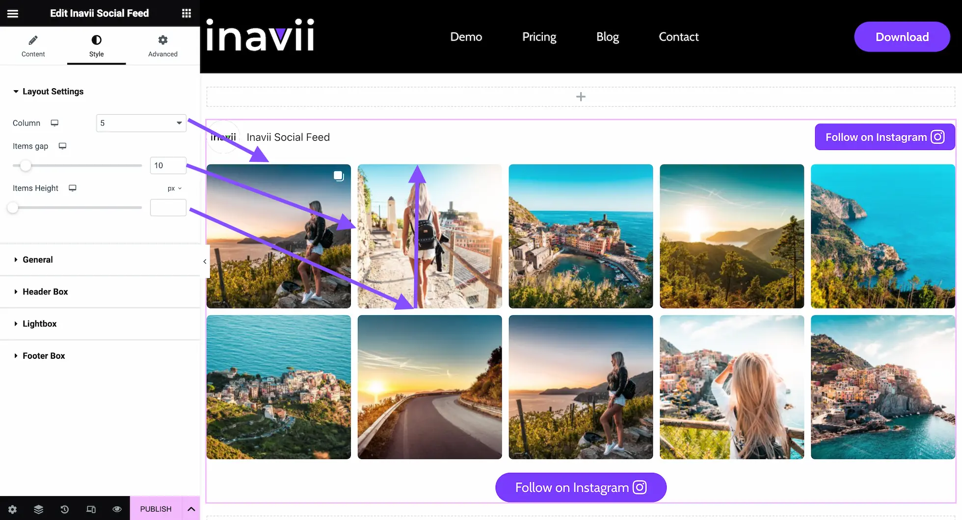 5. Our Inavii Social Feed for Instagram has some additional functions that you can use to customise the following: